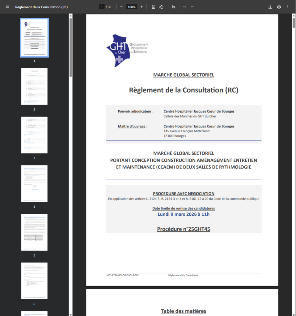 - Date limite de remise des offres : 9 mars 2026 à 11h, via la plateforme électronique achatpublic.com.